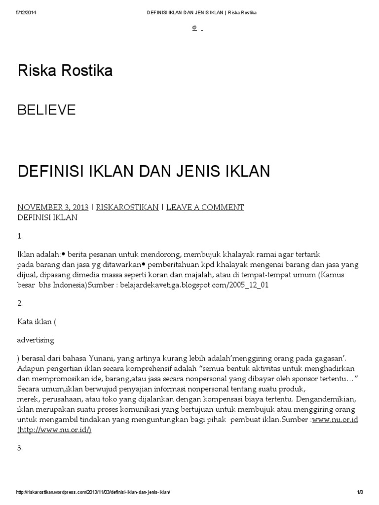 Definisi Iklan Dan Jenis Iklan Riska Rostika