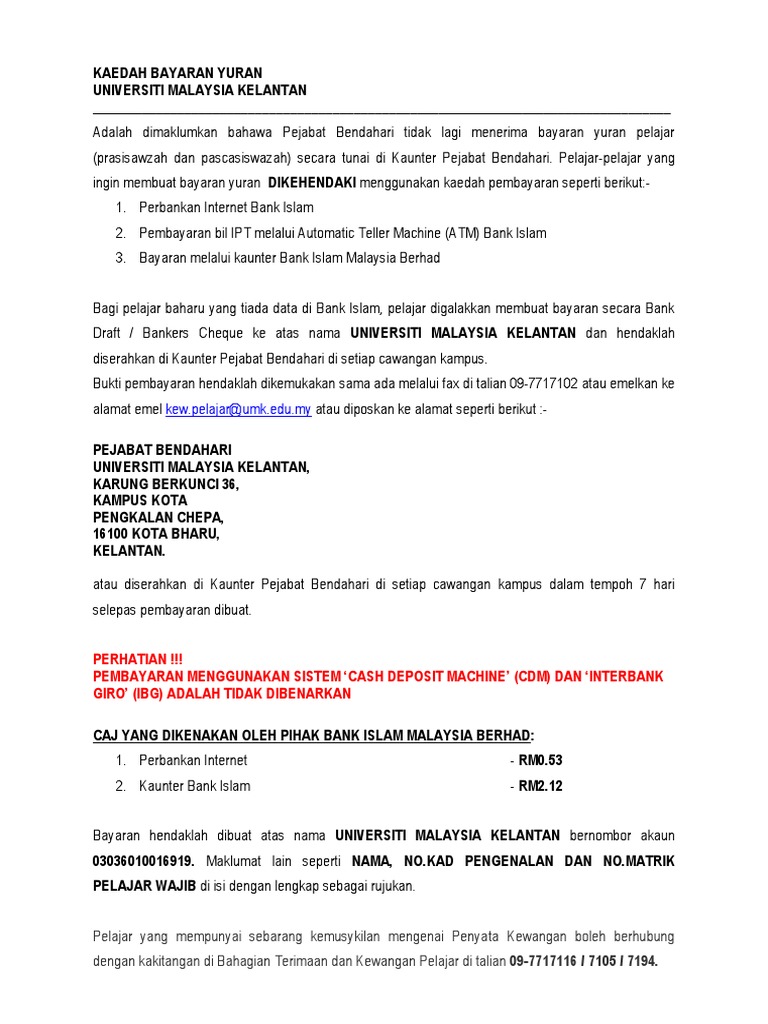 Panduan Pembayaran Slip Pembayaran Bank Mestilah Mempunyai Cetakan Komputer Kolej Pdf Document