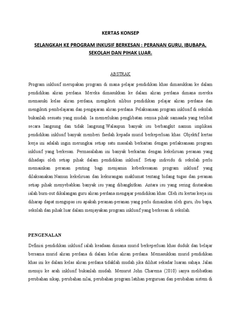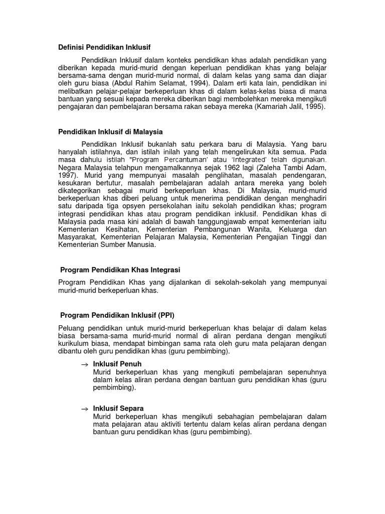 Doc Pendidikan Inklusif Pendidikan Khas Sk Tunjang Academia Edu
