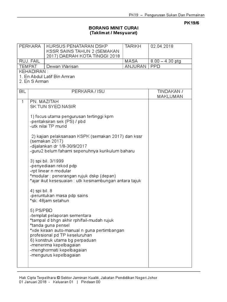 Lampiran Pk19 6 Borang Minit Curai Sains