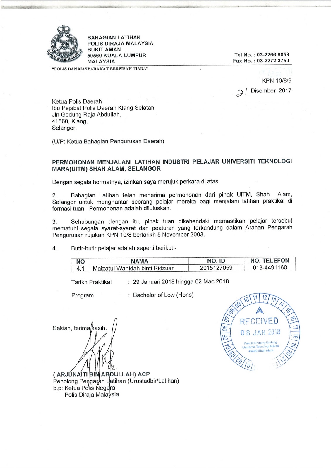 Latihan Industri Fuu Surat Penerimaan Latihan Industri Daripada Majikan