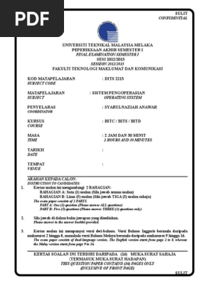 Dits 2213 Final Exam Os Parallel Computing Process Computing