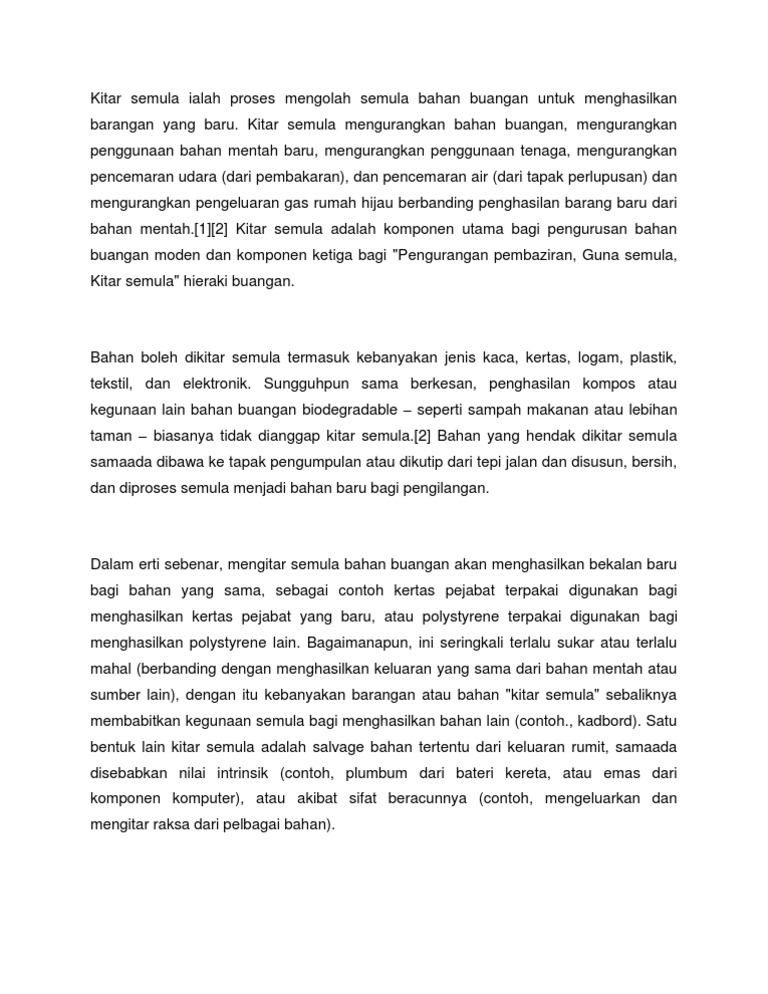 Kitar Semula Ialah Proses Mengolah Semula Bahan Buangan Untuk Menghasilkan Barangan Yang Baru
