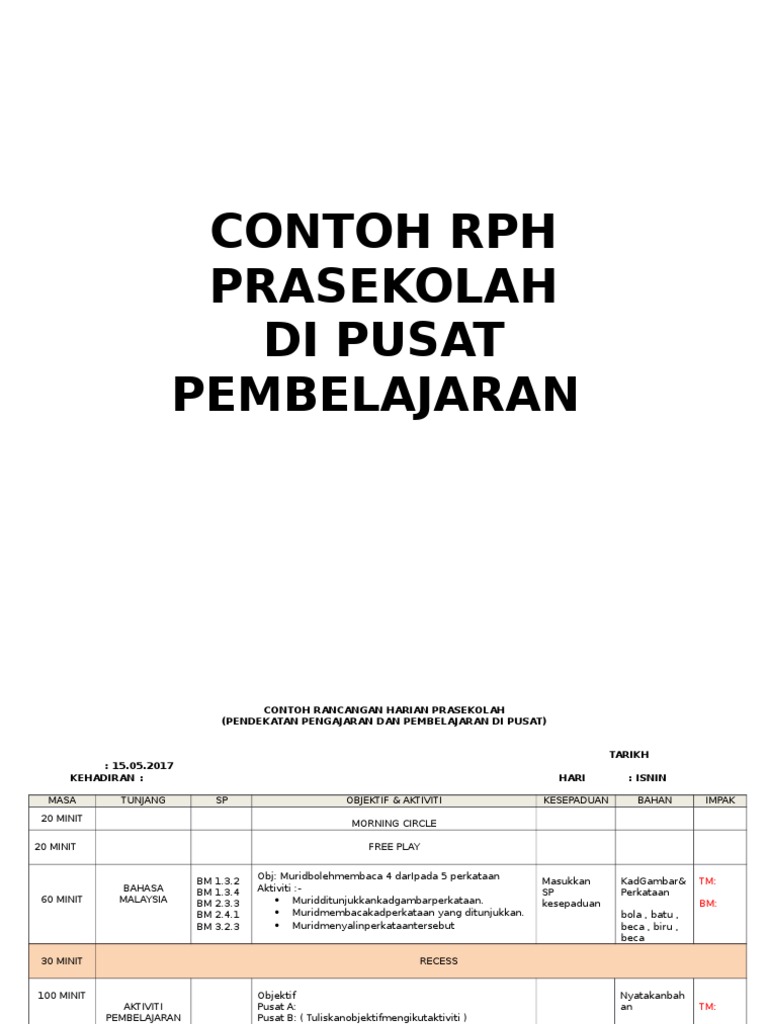 Rancangan Pelajaran Slot Di 4 Pusat Pembelajaran Bengkel Rph Rpt 2017