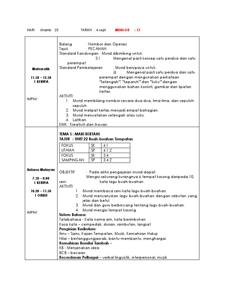 Rancangan Pengajaran Slot Bahasa Malaysia Prasekolah Nzrg Lovefreestr Ru