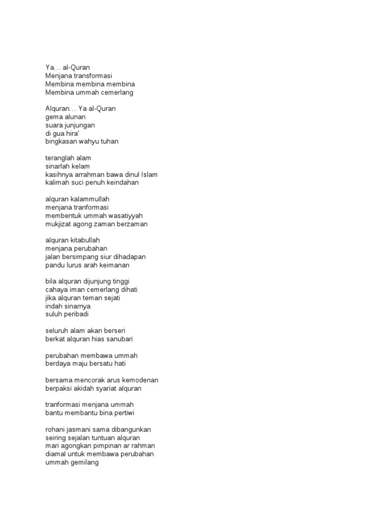 Lirik Al Quran Menjana Transformasi Ummah Wasatiyyah