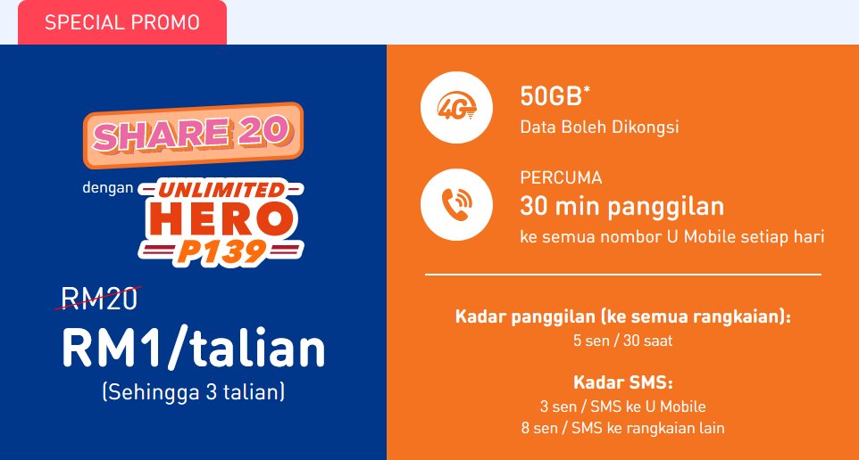 U Mobile Ada Promosi Talian Tambahan Dengan 50gb Data Hanya Rm1 Sebulan Eazyreload
