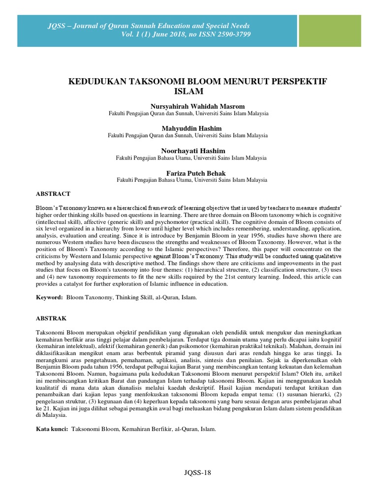 Doc Taksonomi Bloom Nur Fatihah Muhammad Academia Edu