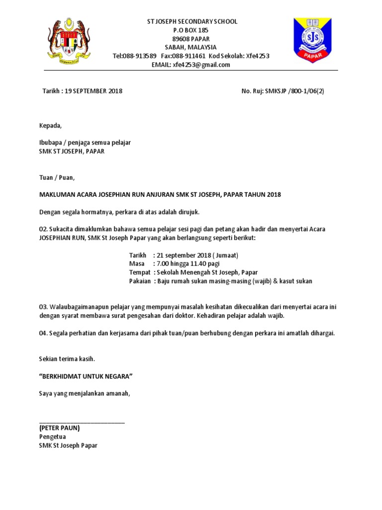 Contoh Surat Pengesahan Ran Kokurikulum 2012