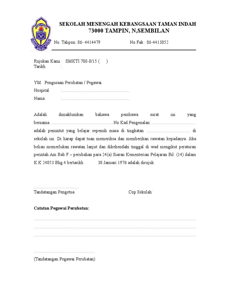 Surat Kiriman Rasmi Berhenti Sekolah Rasmi Sud